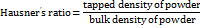 Hausner’s ratio is an indirect index of ease of powder flow. It is calculated by the following formula [14].