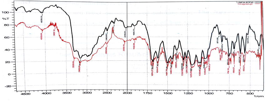 Fig. 4: FTIR spectra of drug and drug+sodiumstarch glycolate