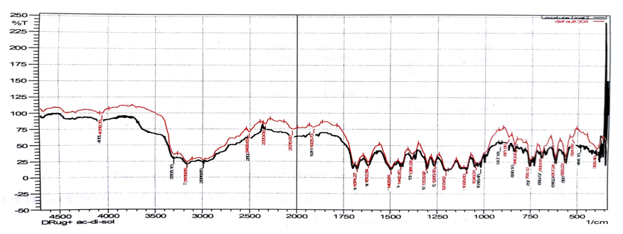 Fig. 3: FTIR spectra of drug and drug+croscarmelose sodium