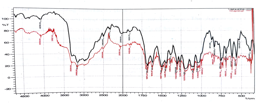 Fig. 5: FTIR spectra of drug and drug+mixture