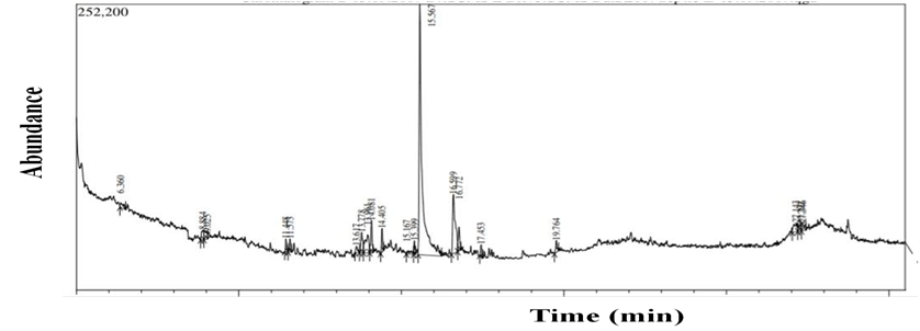 Fig. 2: Gas chromatography-mass spectrometry (GC-MS) analysis of Manilkara hexandra aqueous stem bark extract