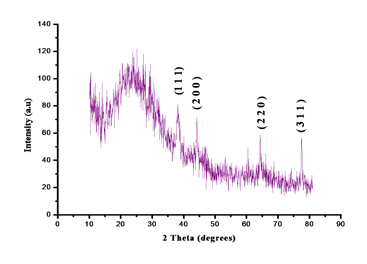 Fig. 7: X-ray powder diffraction (XRD) of MHSB-AgNPs