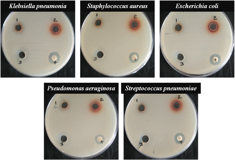 The antibacterial activity of the stem bark extract, Manilkara hexandra stem bark silver nanoparticles (MHSB-AgNPs), silver nitrate (AgNO3) solution, and standard were determined by the well diffusion method against various bacteria, such as Klebsiella pneumonia, Staphylococcus aureus, Escherichia coli, Pseudomonas aeruginosa and Streptococcus pneumonia on Muller Hinton agar according to the Clinical and Laboratory Standards Institute (CLSI) [14]. The testing sample (75 µl/ml) is loaded with 6 mm of an antibiotic disc and compared with Amoxicillin as standard.