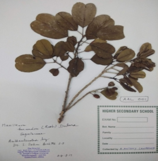 Fig. 1: Manilkara hexandra (Roxb.) dubard identified in rapinet herbarium