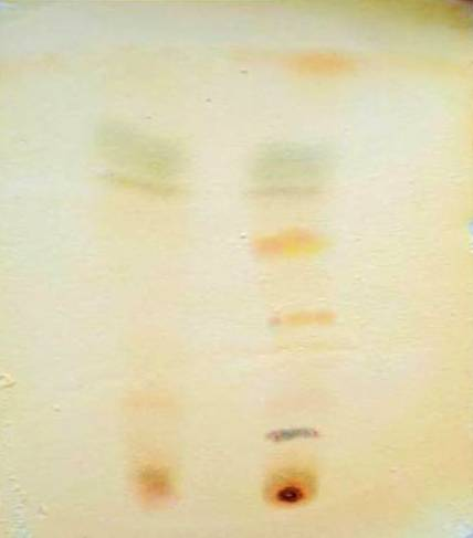 Fig. 1: Preparative TLC run with standard asiatic acid and Centellaasiatica extract