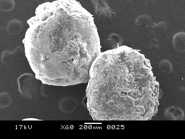 SEM of microspheres was taken at high magnifications. The formulations were all hemispherical. The surfaces were not very smooth and present in a compact form and drug crystal are not visible in the surface.