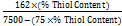 Where, 162 = Molecular weight of glucose unit, 7500 = Molecular weight of the thiol group attached with 100 anhydro-glucose unit, 75 = Molecular weight of the thiol group.