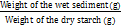 In a typical procedure, 1 gm of the starch sample was weighed into a centrifuge tube and 10 ml of water was added and vortexed thoroughly. The suspensions were allowed to stand at room temperature for 1 hour and then centrifuged at 2000 rpm for 10 min. The volume of water on the sediment was measured and the water absorption capacity was expressed as ml of water absorbed by the 1 g of starch (v/w) [28].