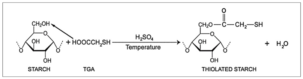 Starch is the most frequently used excipients in pharmaceutical formulations based on its thickening, adhesive, gelling, swelling, film-forming properties, biodegradability, biocompatibility and non-toxicity [1, 2]. Jackfruit (Artocarpus heterophyllus, belonging to the family Moraceae) is one of the well-known tropical fruits broadly grown-up in tropical countries and its seeds are tremendous sources of starch and protein [3, 4]. Native starches are offensive for many applications due to their inefficiency to withstand various processing requirements such as high temperature, diverse pH, so there is urgent to improve the desired functional properties via chemical modification [5]. Chemical modification is mainly attained through the addition of several functional groups into the starch molecules to encounter the different demand of applications [6, 7]. Thiomers serve as a new commitment in the field of polymers and provide numerous applications such as the improved controlled release of formulation, permeation and reduced irritation [8]. Thiomers are easily obtained by the incorporating thiol functional group (-SH) to the polymeric backbone via substitution reaction resulting in thiolated polymer [9, 10].