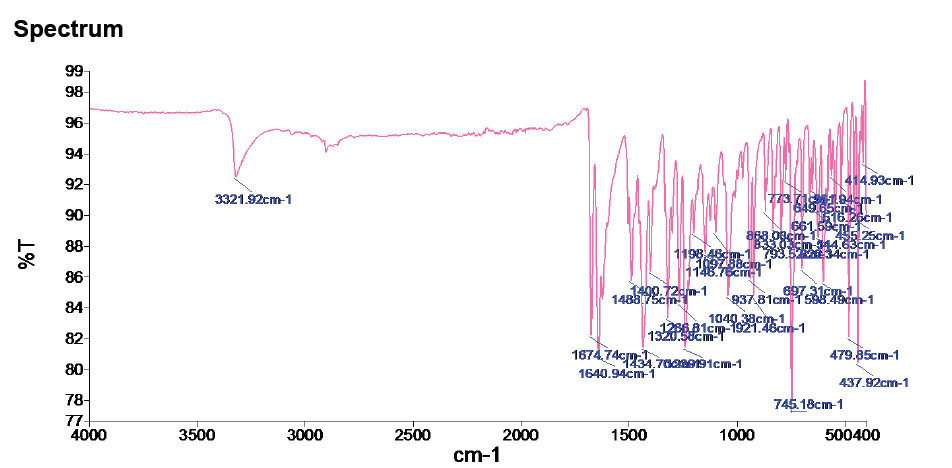 Fourier transform infrared (FTIR) studies were carried out to investigate any interaction between pelletizing aid κ-carrageenan and drug tadalafil. Pure drug, κ-caragennan and pellets of the formulation containing nanosuspension (PN) were finely powdered, and infrared spectrums of these powders were recorded using FTIR (Shimadzu FTIR-8101) according to the KBr disk method. Chemical integrity of the drug was determined by comparing the infrared (IR) spectra of pellets with that of the pure drug and κ-carrageenan.