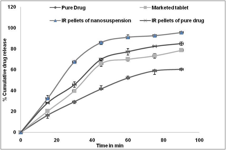 Conclusion: It can be concluded that formulation of nanosuspension of poorly soluble drug and its use as a binder for the preparation of immediate release pellets markedly improved the dissolution rate.
