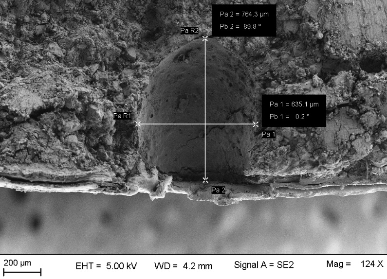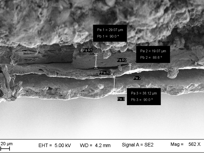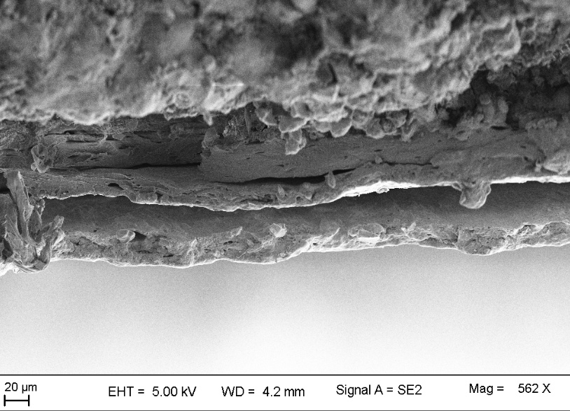 Fig. 4: (b) Scanning electron micrograph showing the cross section of pellets
