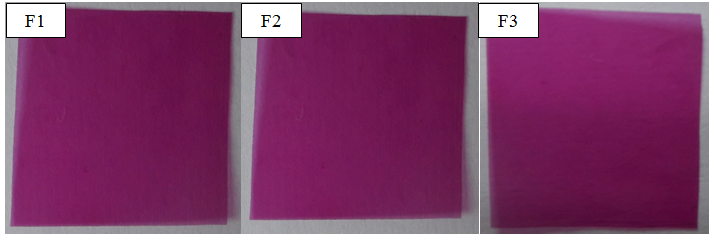 Films of 1 cm2were cut from different batches and weighed. The results are given in table 2. Same mass of film was obtained with three batches of films indicating good reproducibility of preparation method and formulation.