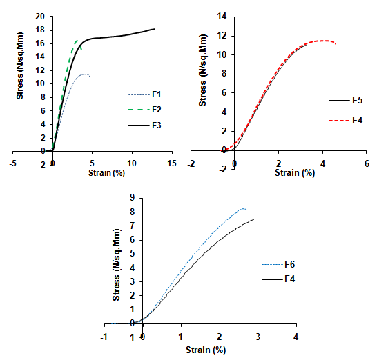 MDFs should possess moderate tensile strength and high % elongation. The results revealed that MDFs containing PVP and SLS showed moderate tensile strength. The results were given in table 3and shown in fig. 4.