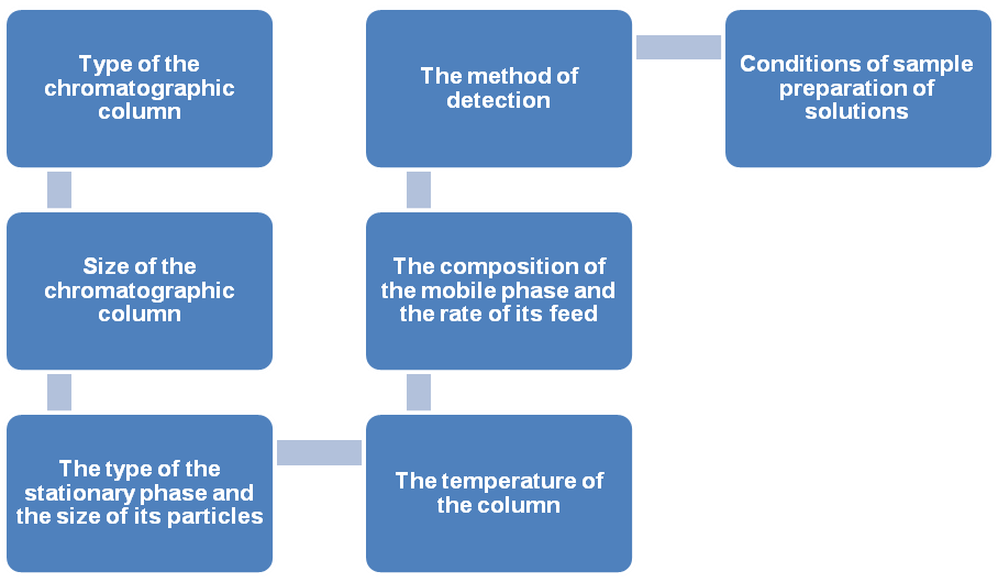 Among the disadvantages of spectrophotometry, low selectivity, low sensitivity and relatively high variability of the results of the analysis can be noted. The current review is created with an intended to focus on the advantage of HPLC for determination of ACE inhibitors. In the design of HPLC and UHPLC techniques, it is necessary to consider many factors that will influence the results of the analysis, namely the size of the chromatographic column, the type of the stationary phase and the size of its particles, the temperature of the column, the composition of the mobile phase and the rate of its feed, the method of detection, conditions of sample preparation of solutions and others The choice of the column type is made taking into account the physical and chemical properties of the analyzed analytes. Development of chromatographoc conditions for HPLC and UHPLC under analytical method development presents on fig. 3.