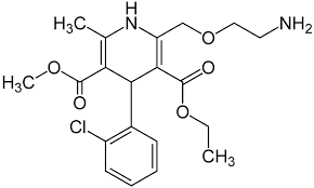 Amlodipine is a synthetic dihydropyridine and a calcium channel blocker with antihypertensive and antianginal properties. Amlodipine inhibits the influx of extracellular calcium ions into myocardial and peripheral vascular smooth muscle cells, thereby preventing vascular and myocardial contraction. Chemical name of amlidipine is 3-~{O}-ethyl 5-~{O}-methyl 2-(2-aminoethoxymethyl)-4-(2-chlorophenyl)-6-methyl-1,4-dihydropyridine-3,5-dicarboxylate (fig. 1) [3].