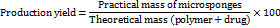 The production yield of the microsponge was determined by calculating accurately the initial weight of the raw materials and the last weight of the microsponge obtained [23].