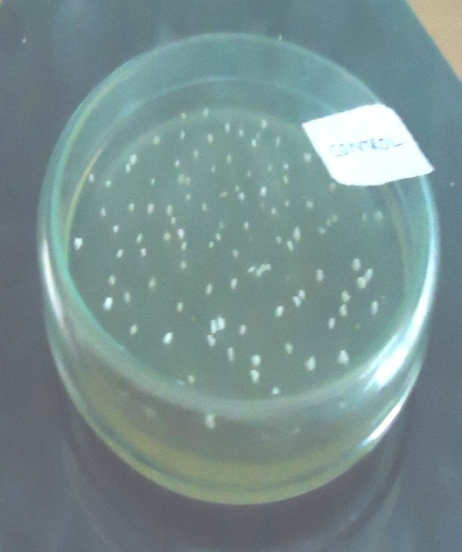 8th day inhibition of colony after application of formulated gel THMG-II, marketed formulation and control.