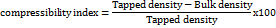 Both the compressibility index and the Hausner’s ratio were determined by using bulk density and the tapped density of a powder [12].