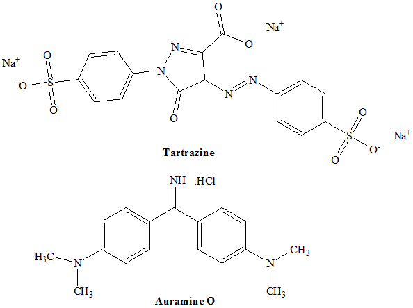 Fig. 1: The chemical structures of Tartrazine (TAR) and Auramine O (AUO)