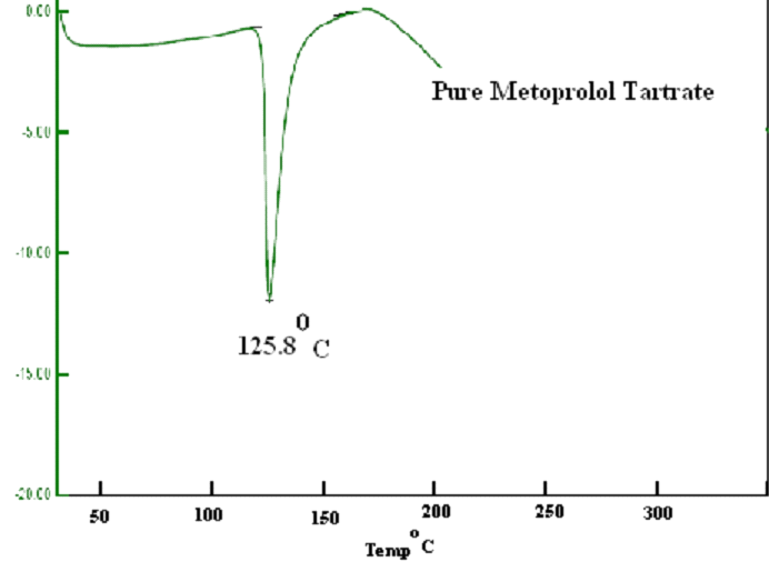 The pure metoprolol tartrate peak was obtained at 125.8 °C. The DSC results suggest that the drug and polymers are compatible as found in fig. 1.