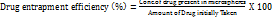Microparticles were evaluated for micromeritic properties by measuring the angle of repose, bulk density, tapped density, Carr’s index and Hausner ratio using standard reported procedures. The average particle size of microspheres was analyzed by simple optical microscopy method using the ocular lens and stage micrometer. Approximately 300 microspheres were counted and the average equivalent spherical diameter was measured [16-18]. The drug entrapment efficiency was determined by taking accurately weighed microspheres equivalent to 25 mg of losartan potassium and crushed to obtain a fine powder. The powder was dissolved in 100 ml of phosphate buffer pH 6.8 in a conical flask. The solution obtained was filtered, suitably diluted and analyzed spectrophotometrically using Ultraviolet-Visible (UV-VIS) double beam spectrophotometer at 235 nm. All the readings were taken in triplicate. Drug content was determined by the following formula: