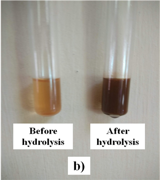 Fig. 2. a.) Molisch test for the stem of Manilkara hexandra gum (MHG), b.) Hydrolysis test