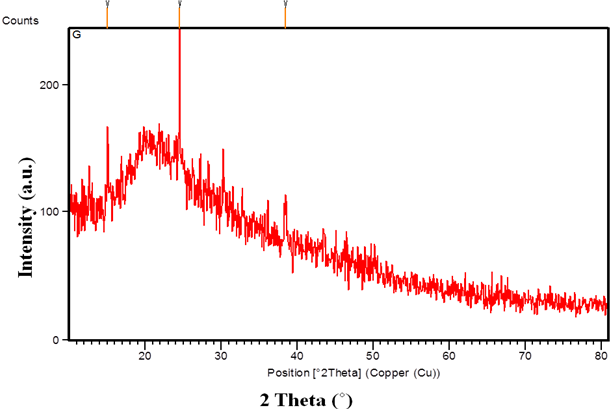 The natural polymer of stem Manilkara hexandra gum (MHG) was recorded by X-ray diffractometer (Goniometer). This analysis examined at measurement temperature (25˚ C), voltage (40Kv), and current (30 mA), scan step time (10.16 s), anode material (Cu) and specimen length (10 mm).