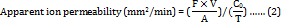 Where V is the volume of the receiving chamber solution, A is the area of the tested film, C0 is the initial NaCl concentration in the donor, and T is the film thickness.