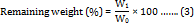 | Mass ratio of CS/RSF (w/w) | Remaining weight (%)±SD | |||