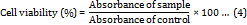 CS/RSF films cytotoxicity was determined by telomerase-immortalized human corneal epithelial cells line (HCECs) viability. The HCECs were seeded onto 96-well plates at 1.5 × 104 cells per well in 100 µl of cell culture medium and incubated at 37 °C, 5% CO2 until reaching ~90% of cell confluence (3 d). The RSF/CS films, after soaking with PBS for 24 h, were cut into the same size of 96-well plates and were then autoclaved. Then, the films were placed gently on HCECs in 96-well plates and incubated for up to 24 h at 37 °C, 5% CO2. After 24 h, the films were carefully removed from the wells. Then, the cells were washed with PBS twice, and 100 µl of 3-(4, 5-Dimethylthiazol-2-yl)-2, 5-Diphenyltetrazolium Bromide (MTT) solution (0.5 mg MTT/ml of medium) was added. After a 2 h reaction time, MTT formazan was extracted with dimethyl sulfoxide (DMSO) for 10 min and the absorbance of the extract was measured at 595 nm with a microplate reader (Synergy™ H1, BioTek Instruments, Inc., Vermont, USA) [54]. All results were expressed as relative viability compared to cells grown in the absence of a film (control). The ratio (%) of MTT formazan absorbance for each sample to the absorbance of MTT formazan for control represented cell viability using the following formula (4).