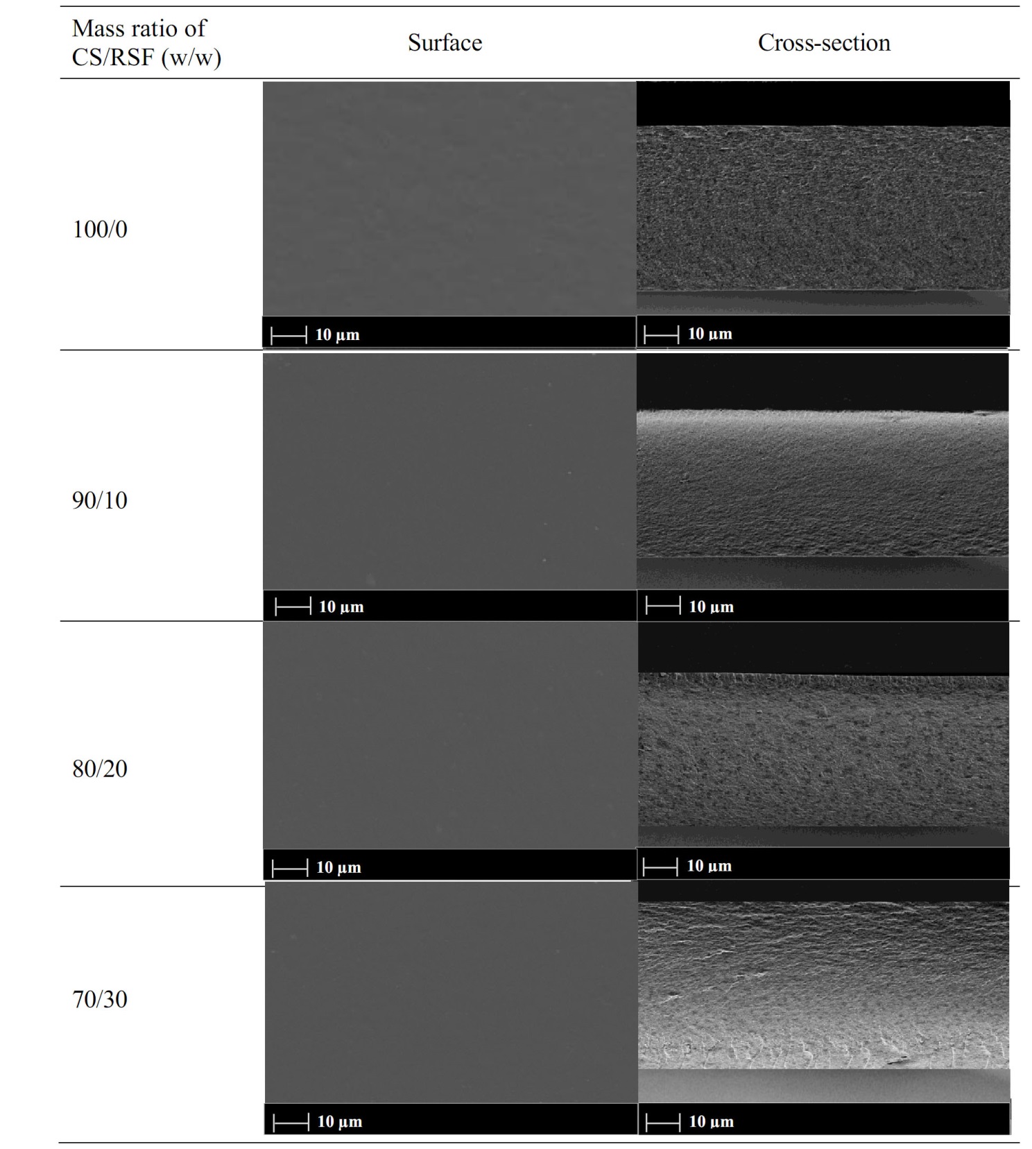 Table 1: SEM micrographs of surface and cross-section of CS/RSF films (×1000 magnification)