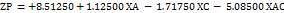 The final equation in terms of coded factors for ZP is represented by the following polynomial equation (equation 9)