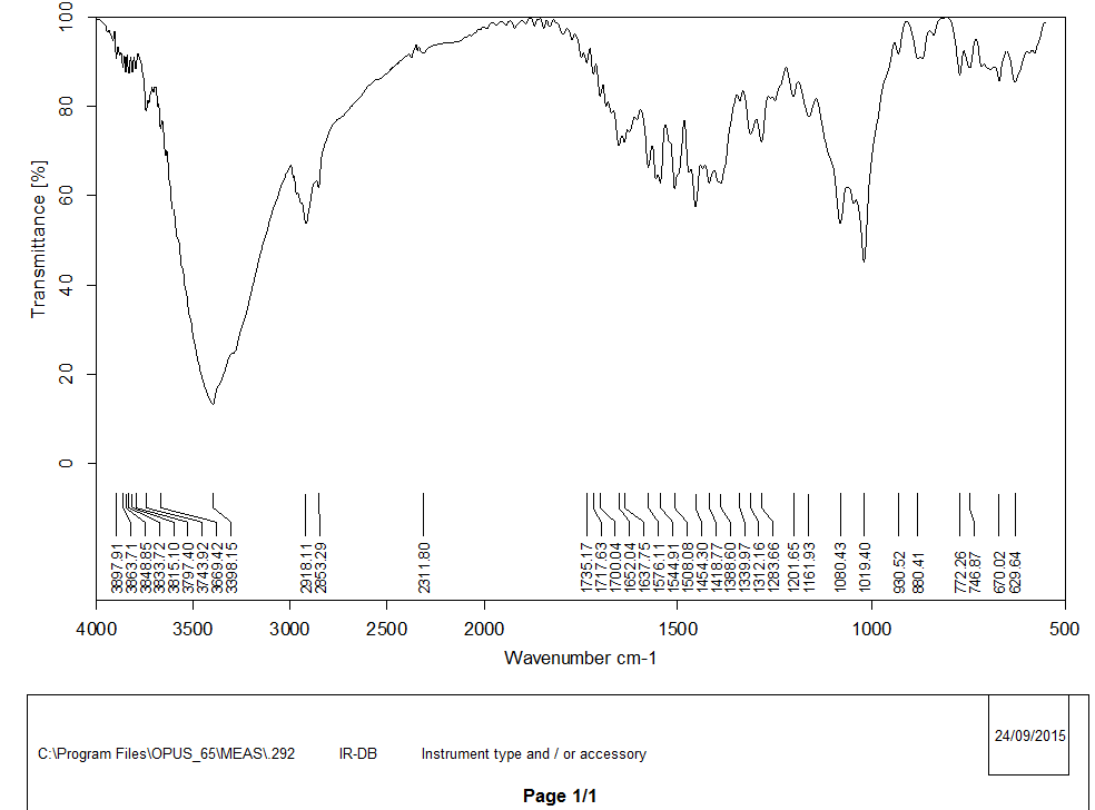 Fig. 2: Fourier transform infrared spectrum of pure diclofenac sodium