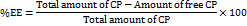 The entrapment efficiency (%EE) of formulated CP SLN was determined by measuring the concentration of unentrapped drug in the lipidic dispersion by using the centrifugation method. The SLNs Samples were subjected to centrifugation at 10000 rpm for 15 min (Remi Centrifuge Pvt. Ltd., India) and the amount of Clobetasol propionate Supernatant was collected, suitably diluted with methanol and analyzed for free drug content by UV spectroscopy at 239 nm. %EE was calculated by following equation.
