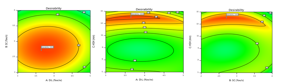 Fig. 4: Desirability for the effect of lipid: drug ratio, homogenisation time and surfactant concentration