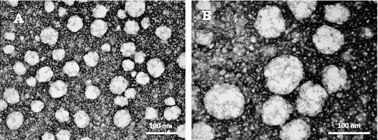 The morphological characters of CP loaded SLNs were observed with transmission electron microscopy (TEM; Philips, Tecnai 20, Holland). A drop of the diluted sample was placed on the surface of carbon-coated copper grid and stained with a drop of 1% (w/w) aqueous solution of phosphotungstic acid (negative stain) for 30s. Excessive staining solution was washed out by filter paper and a thin aqueous film was left on the surface. After staining, samples were dried at room temperature for 10 min to perform out investigation [16].
