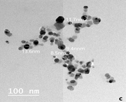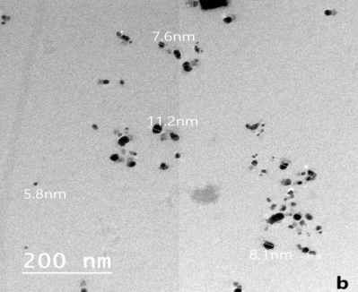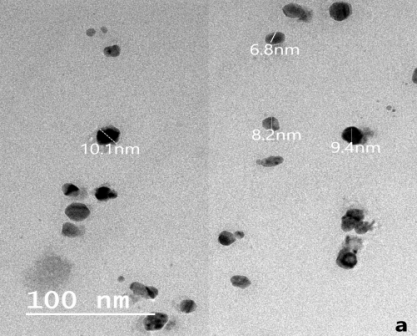 TEM photography fig. (1) Showed biosynthesized AgNPs were predominantly spherical in shape with an average size ranging of 8.83 and 11.24 nm for JSA AgNPs and JSG AgNPs, respectively.