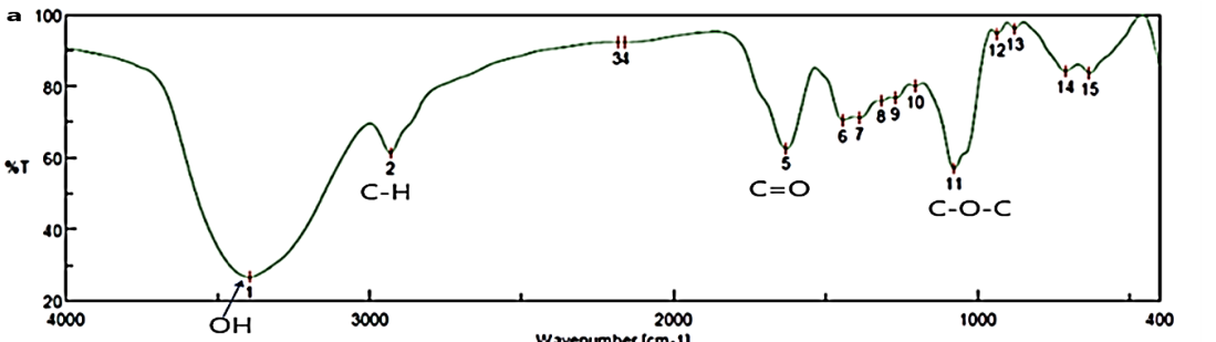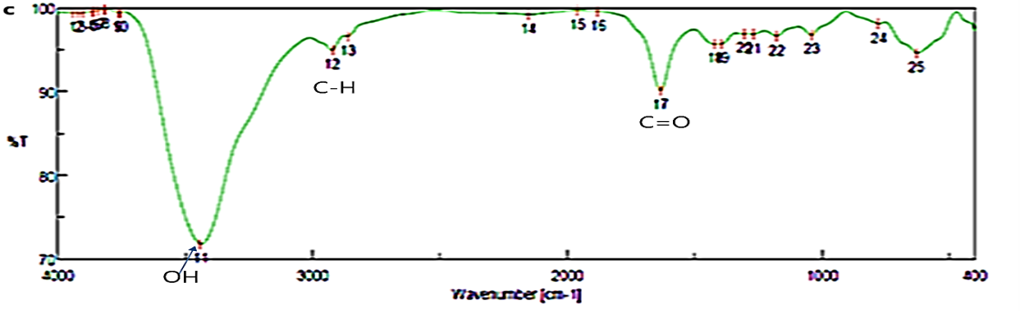 The UV–Vis spectroscopy of AgNPs were monitored as a function of time in 10 mm optical path-length-quartz-cuvettes with UV–Vis range 3600 spectrophotometer (Shimadzu, Japan). Samples were diluted 5 times with distilled water before being measured. The morphology of the particles (shape and dimensions) was examined by Transmission electron microscope (TEM). (JEOL-JEM-1011, Japan). Sample for TEM analysis were prepared by placing 3 ml of the sample on the copper grid and kept for drying at room temperature for 15 min. The different functional groups of the prepared nanomaterials in the range of 4000–400 cm_1 were measured by Fourier transform infrared spectroscopy (FTIR) 6100 spectrometer (Jasco, Japan).