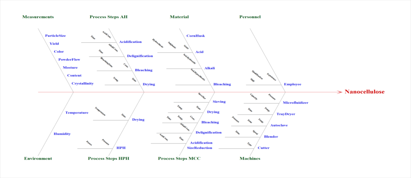 Fig. 2: Ishikawa diagram for the identification of production parameters of NC