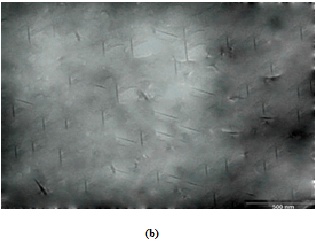 The TEM images of AH-NC and HPH-NC are shown in fig. 8. AH-NC and HPH-NC are shown as niddle shaped particles. NC showed a broad polydispersity of 100-500 nm in length. NC is comparable in length to the nanocrystallites isolated from rice husk [44] and barley [45]. It can be concluded that the extraction methods affect the morphology and size distribution of NC. HPH is a harsh process affecting most of the disordered regions of the cellulose, whereas the acid hydrolysis alone is effective in breaking strong hydrogen bonds of native fibers dissolving most of the amorphous regions thereby resulting in an organized picture in case of AH-NC [46].