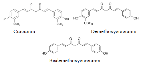 Fig. 1: The chemical structures of Curcuminoids (Curcumin, Demethoxycurcumin and Bisdemethoxycurcumin)