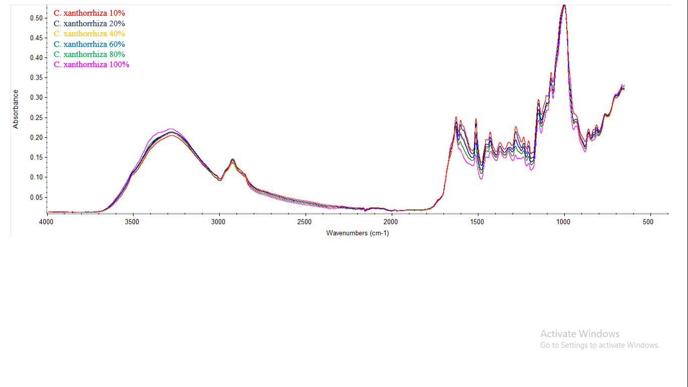Some analytical methods have been developed for authenticating medicinal plants, including fingerprint analysis using High-Performance Liquid Chromatography-Diode Array Detector (HPLC-DAD) combined with chemometrics [7], metabolomics technique using Proton Nuclear Magnetic Resonance (H-NMR) combined with multivariate analysis [10], and DNA based approach using DNA Barcoding [9], Random Amplified Polymorphic DNA (RAPD) [11], and Sequence Characterized Amplified Region (SCAR) [12]. The main disadvantage of these methods is that several steps are needed for sample preparation, making the process slow and costly. Meanwhile, FTIR spectroscopy has been used for authentication of some medicinal plants due to it's rapid, simple, non-destructive, and cost-effective technique [13].