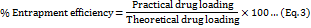 A precisely measured amount of mucoadhesive microspheres (50 mg) of valsartan was dissolved in methanol with stirring until complete dissolution. The solution was then filtered, an aliquot of the filtrate was appropriately diluted, and the content of valsartan was determined spectrophotometrically at 248 nm. The determinations were made in triplicate. The percent drug entrapment efficiency was determined according to the following equation [26-28].