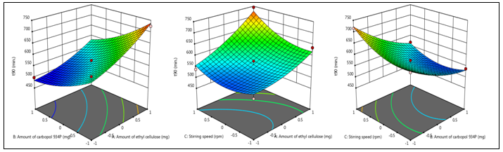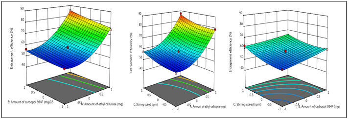 Fig. 3: Thee-dimensional response surface graphs related to drug entrapment efficiency