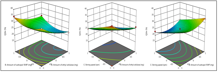 Fig. 4: Thee-dimensional response surface graphs related to Q1 h (%CDR)