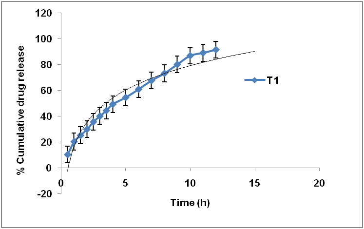 Fig. 8: Release profile of optimized formulation, mean±SD, n = 3