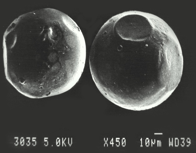 Scanning electron microscope (SEM) (JEOL JSM-6100 scanning microscope, Japan) was used to determine surface characteristics of microspheres. Sample of microspheres was mounted on a stub and coated with a layer of gold using a sputter coater (JFC-1100). The samples were scanned at 5kV and photomicrograph at different magnification ratio [42].