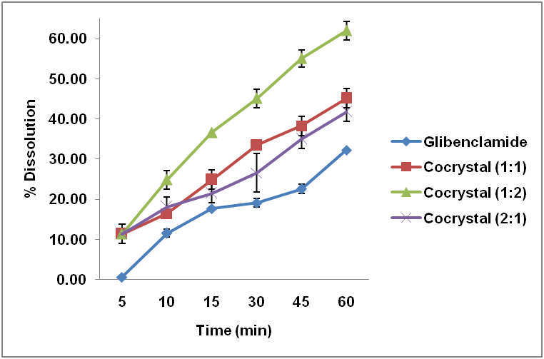 Fig. 2: In vitro dissolution study of the cocrystal (All the values were calculated as mean±SD)