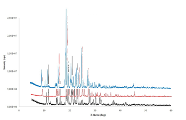 Fig. 4: Diffractogram of glibenclamide, saccharin, and cocrystal